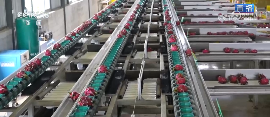 此外,新质出产力带来的变化还有尺度化、可控化。正在这个火龙果种植,曾经实现了全财产链尺度化,他们为火龙果制定了从种苗、种植、采收、分选到包拆、运输的全套尺度。好比像这些采收后的火龙果就会通过从动化分选线,操纵视觉识别、称沉等手艺,实现按外不雅、分量等目标进行从动分级。同时,还为每一个火龙果发放“身份证”,消费者扫码即可领会“从田间到餐桌”的全流程消息。再拆到冷链车上,发往全国各地,确保火龙果从种植一鲜甜到“舌尖”。